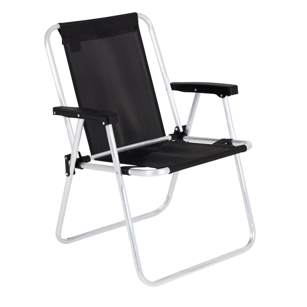 Dobrável e fácil de carregar, a Cadeira Alta Preta Alumínio é prática e confortável, ideal para salas de estar, varandas, parques e campings. Muito resistente, suportando até 110 kg, tem estrutura em tubos de alumínio com peças plásticas em polipropileno. Com visual moderno, tem a tela em polietileno na cor preta. Já os apoios para os braços são em plástico polipropileno. Para guardá-la, basta dobrar. Não ocupa muito espaço, podendo ser colocada em cantos e lugares estreitos. Versátil e funcional, é um charme na decoração.